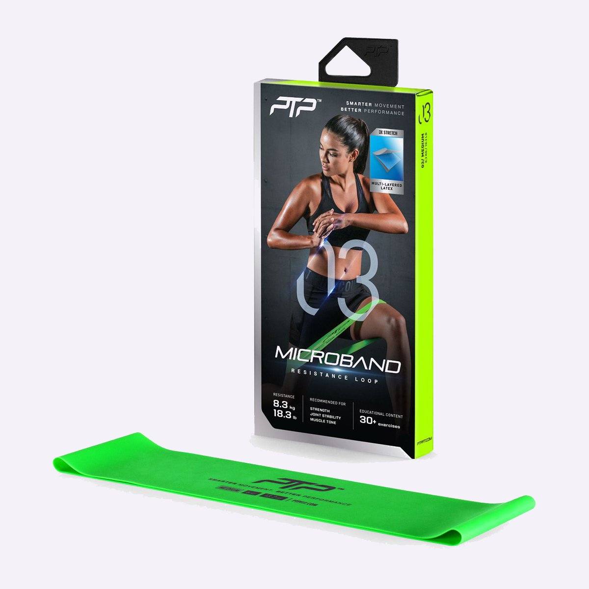 You can also use the MicroBand to condition your hip flexors and rotator cuff muscles (shoulders), which are involved in your upper and lower body mobility, as well as your joint stabilisation. At 8.3 kg (18.3 lb.), the Medium PTP MicroBand offers a challenging, yet achievable level of tension for most individuals (with a normal level of physical activity).