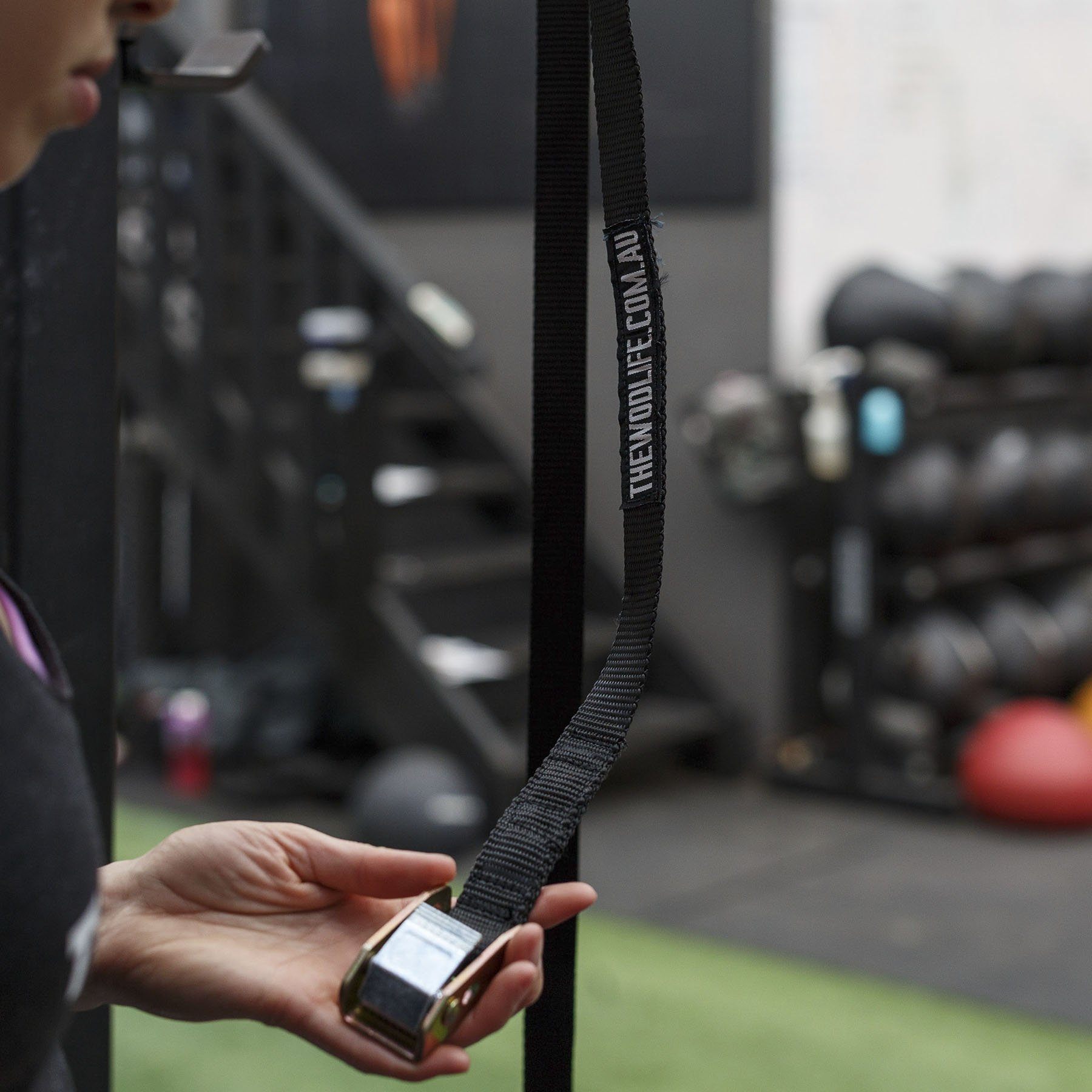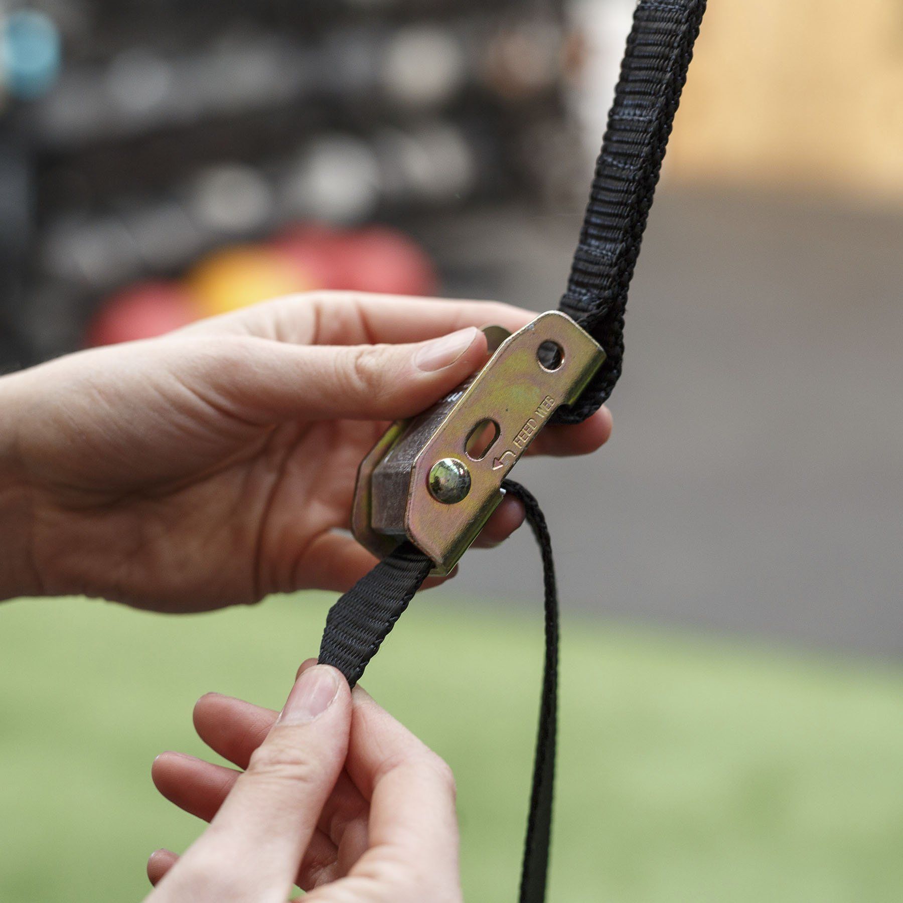 The quick adjusting cam buckles and 17ft nylon strap allows you to easily go between heights for different movements.