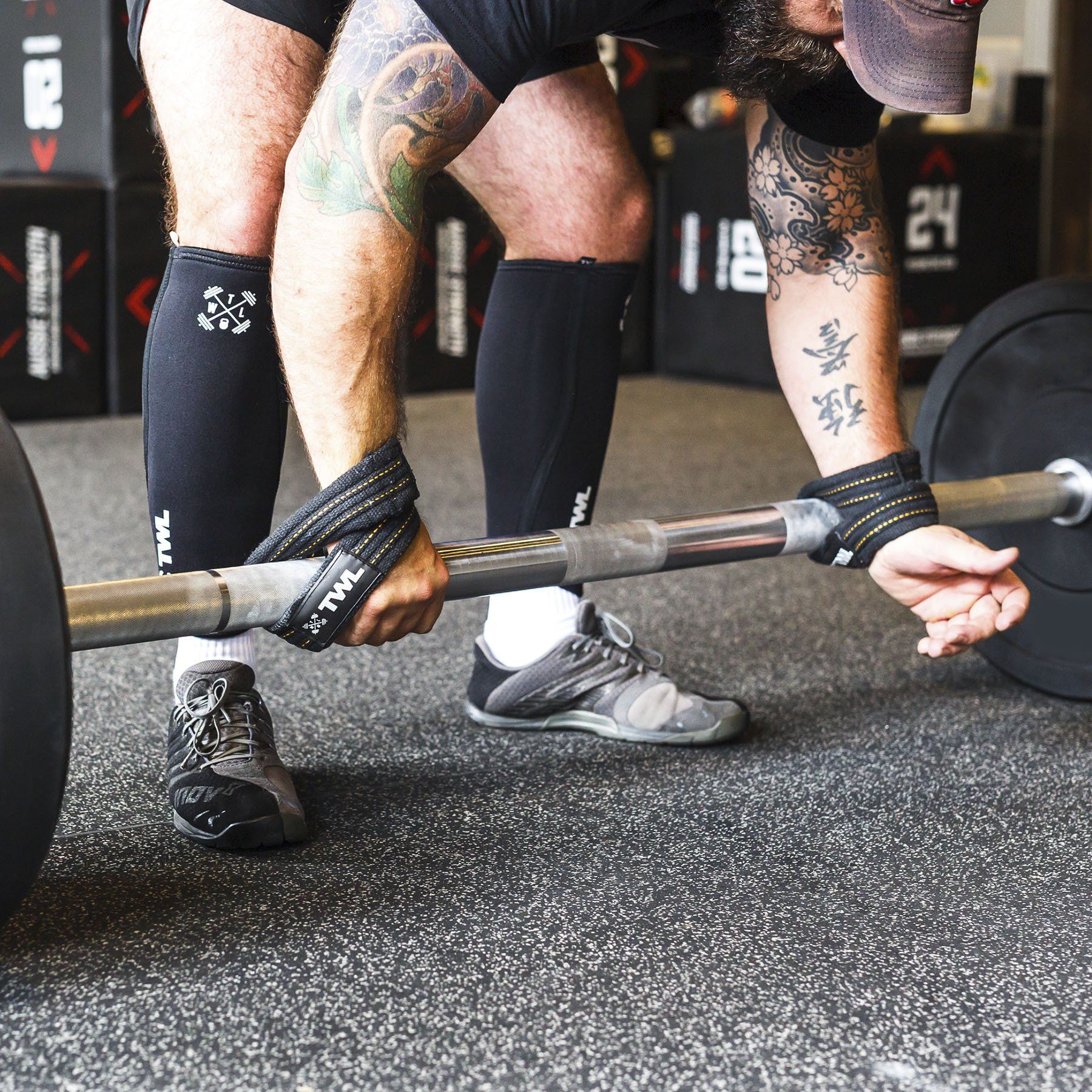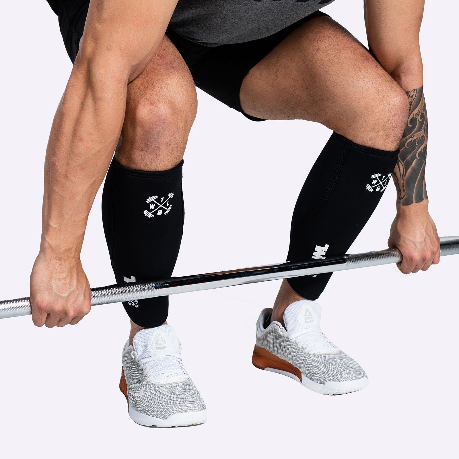 Keep your calves warm and your shins protected during workouts, Olympic weightlifting sessions, obstacle course races and rope climbs with the TWL 5mm Shin & Calf Supports.